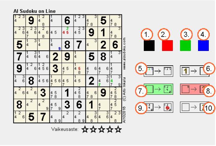 Eri väriset apunumerot helpottavat päättelyä, kun käytät vaikeampia ratkaisutekniikoita.